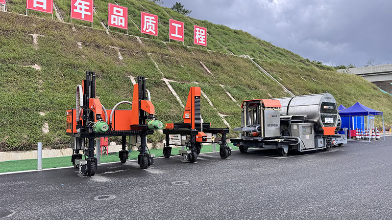 10日的苍容高速3标段观摩现场,我公司研发的三大施工机器人正式亮相演示。这些机器人分别应用于智慧梁场中预制梁钢绞线的穿束、张拉、切割等关键施工环节,通过高精度传感、智能控制和自动化作业,显著降低了人工操作风险,提高了施工标准化水平和工程品质。现场与会人员纷纷驻足观看,并对机器人的性能表现给予了高度评价。