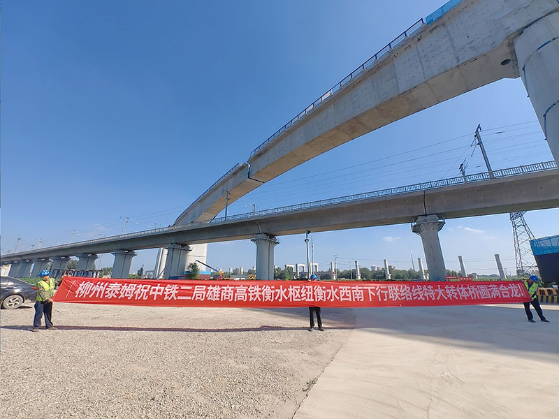 2025年7月15日,中国铁路建设再创佳绩。由中铁二局承建、柳州泰姆公司承接球铰系统制造与转体牵引施工的雄商高铁衡水西南下行联络线特大桥及雄商高铁衡水北东上行联络线特大桥,在建设者的日夜奋战下,成功实现“一日双转”的佳绩,四墩两座转体桥精准完成转体作业,标志着项目建设取得重大阶段性突破。