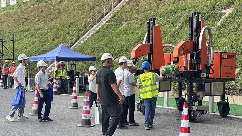 10日的苍容高速3标段观摩现场,我公司研发的三大施工机器人正式亮相演示。这些机器人分别应用于智慧梁场中预制梁钢绞线的穿束、张拉、切割等关键施工环节,通过高精度传感、智能控制和自动化作业,显著降低了人工操作风险,提高了施工标准化水平和工程品质。现场与会人员纷纷驻足观看,并对机器人的性能表现给予了高度评价。