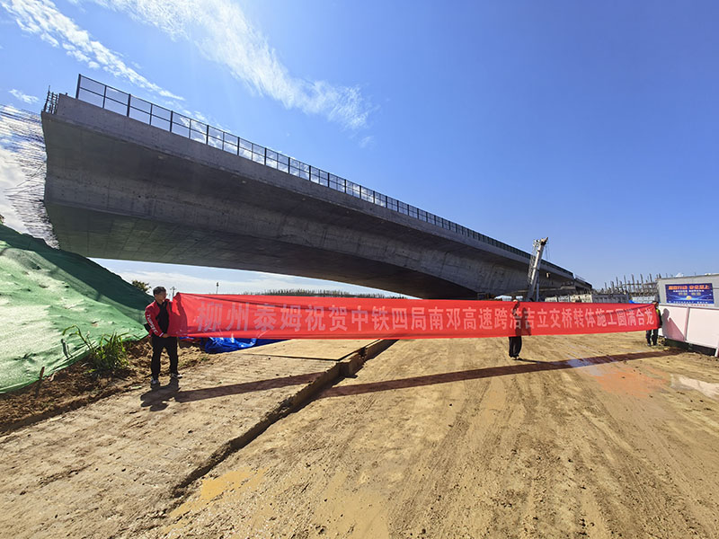 2025年9月23日,由中铁四局承建、柳州泰姆公司承接球铰系统制造与转体牵引施工的南邓高速跨浩吉铁路立交桥顺利完成转体施工,重达18760吨的桥体经过62度逆时针旋转后精准就位,标志着该控制性工程取得关键性突破,为2025年底如期通车奠定了坚实基础。