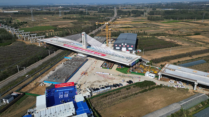 2025年10月21日上午,随着重达2.5万吨的T构梁实现“空中转身”,由中铁十四局承建、柳州泰姆公司承接球铰系统制造与转体牵引施工的董梁高速跨瓦日铁路转体桥完成转体施工,成功跨越繁忙的“晋煤东运”瓦日铁路,标志着董梁高速建设取得重要进展,为早日实现通车运营奠定坚实基础。